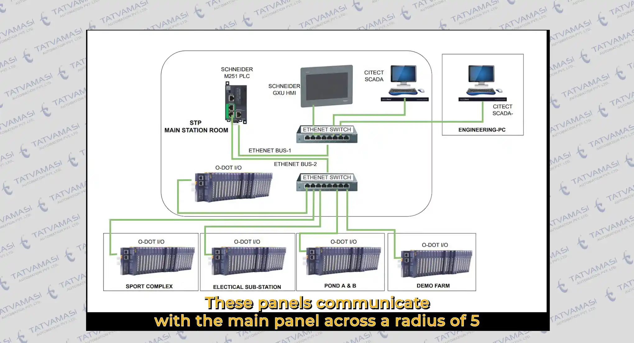 Communication Network : The entire system is interconnected via an optical fiber network, utilizing a ring topology. This ensures reliable communication between the main and remote control panels.