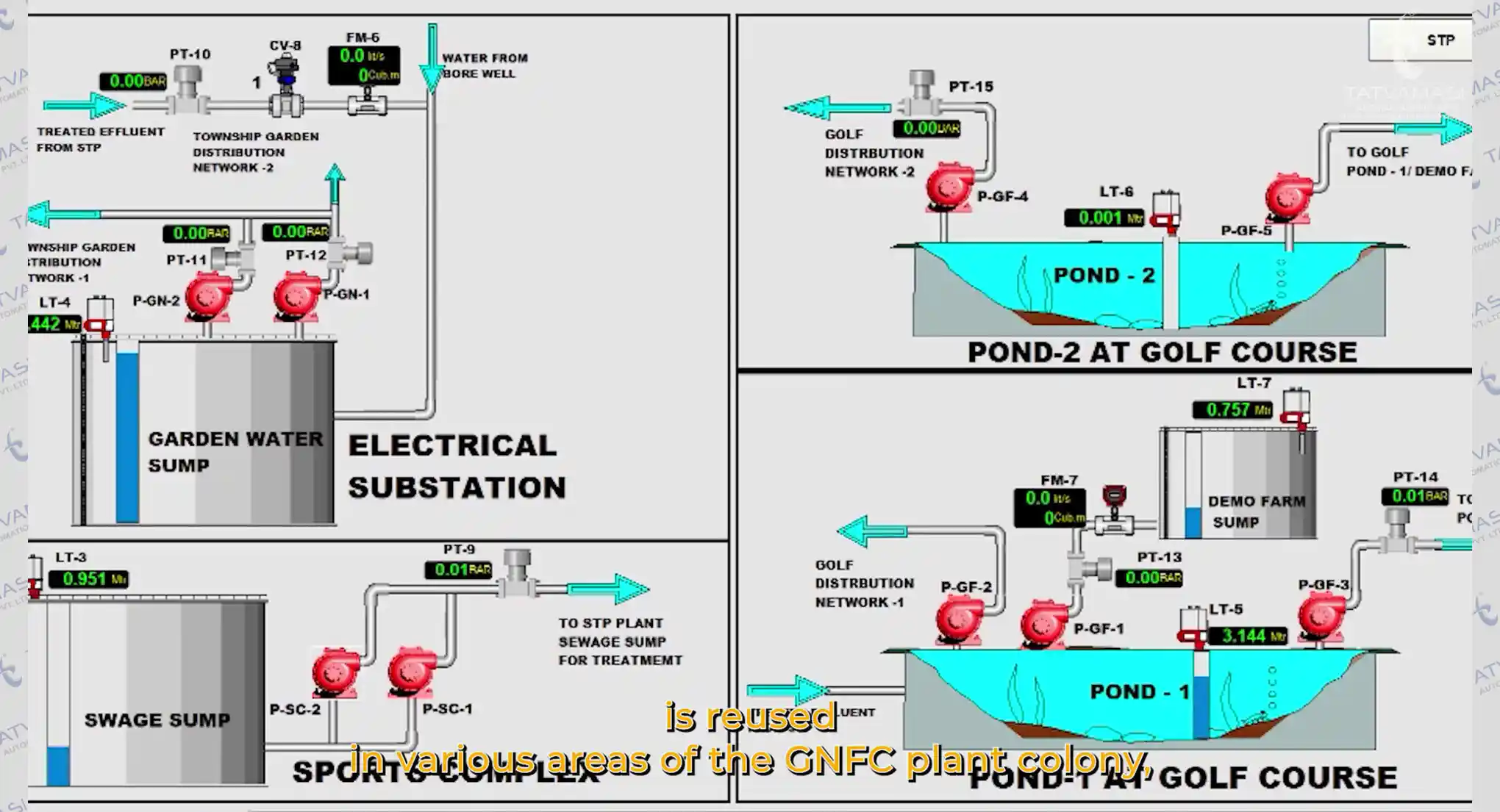 Water Reuse : The treated water from the STP plant is reused in various areas of the GNFC plant colony, including gardens, sports grounds, farming, and golf areas, promoting sustainability.